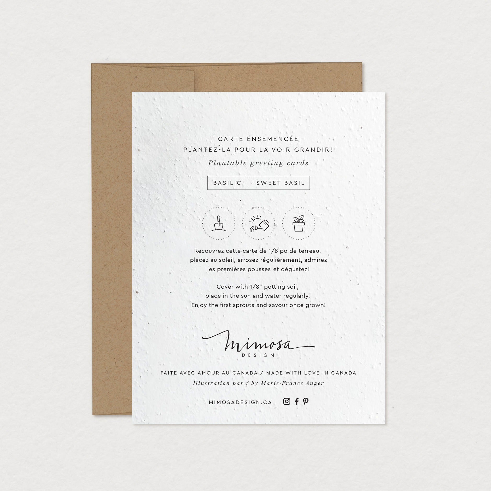 Cette collection à planter saura plaire aux gens soucieux de l’environnement grâce à son carton ensemencé fabriqué à la main au Canada. En plus de recevoir vos voeux, le destinataire pourra planter la carte et faire pousser un joli plant de basilic. Une belle façon de se distinguer tout en étant éco-responsable!
