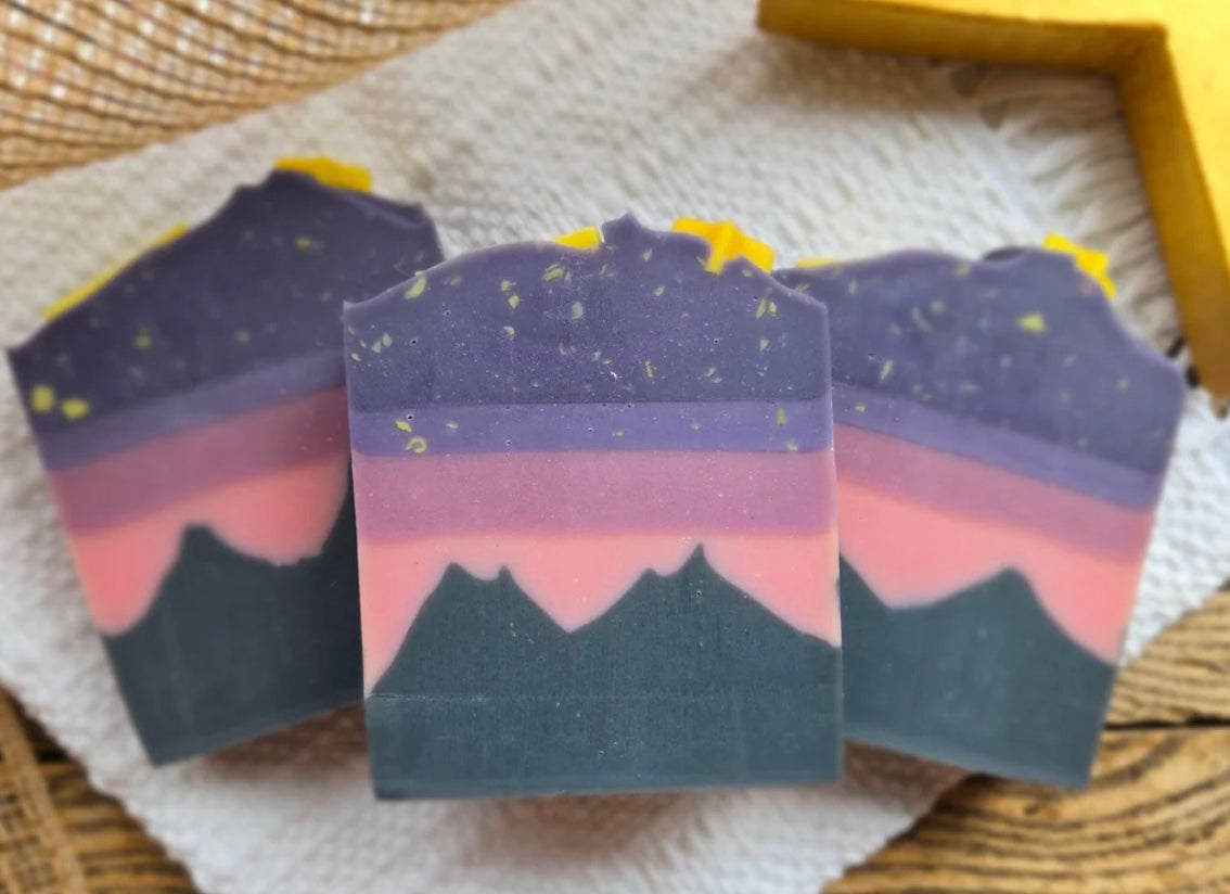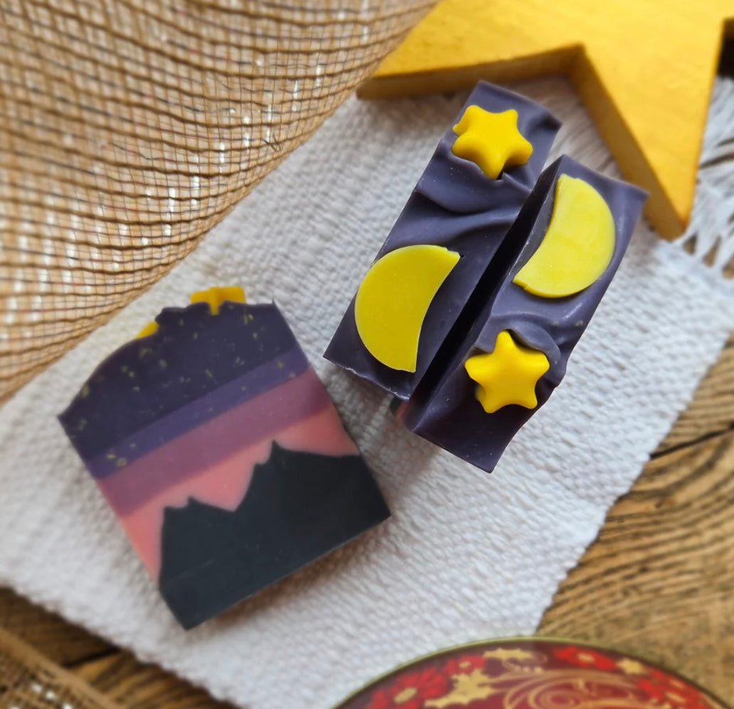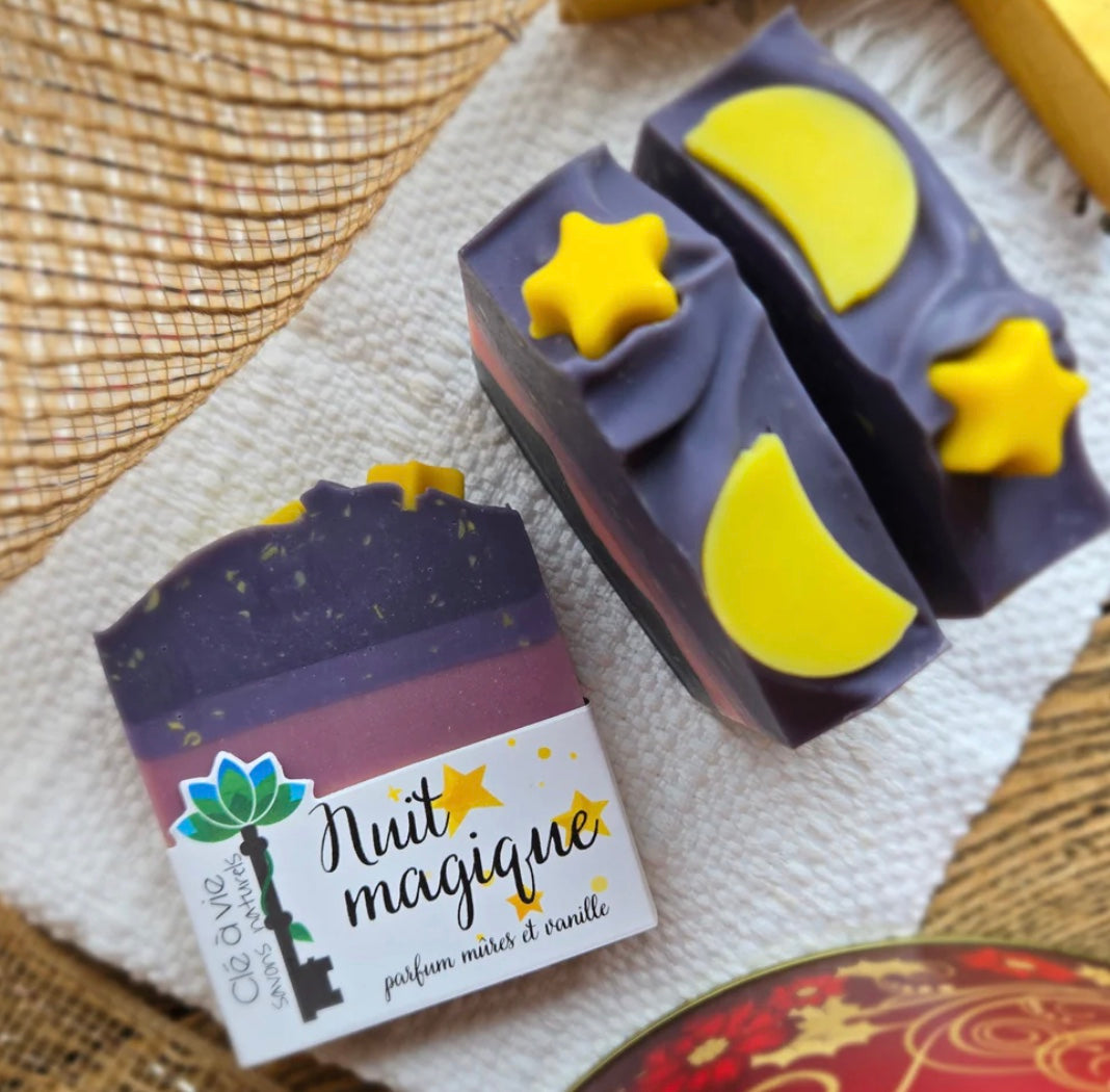 Doux parfum de mûres et de vanille qui s'agence à merveille avec un ciel étoilé aux couleurs mauve et rose!