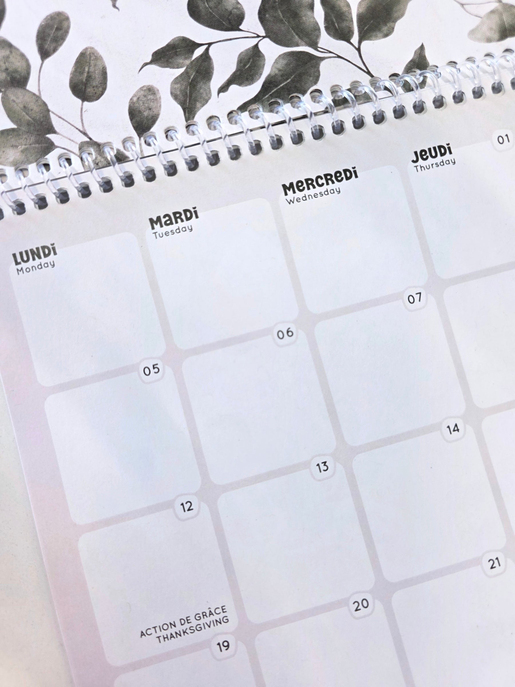 Calendrier mural 2026 - Eucalyptus - Bilingue